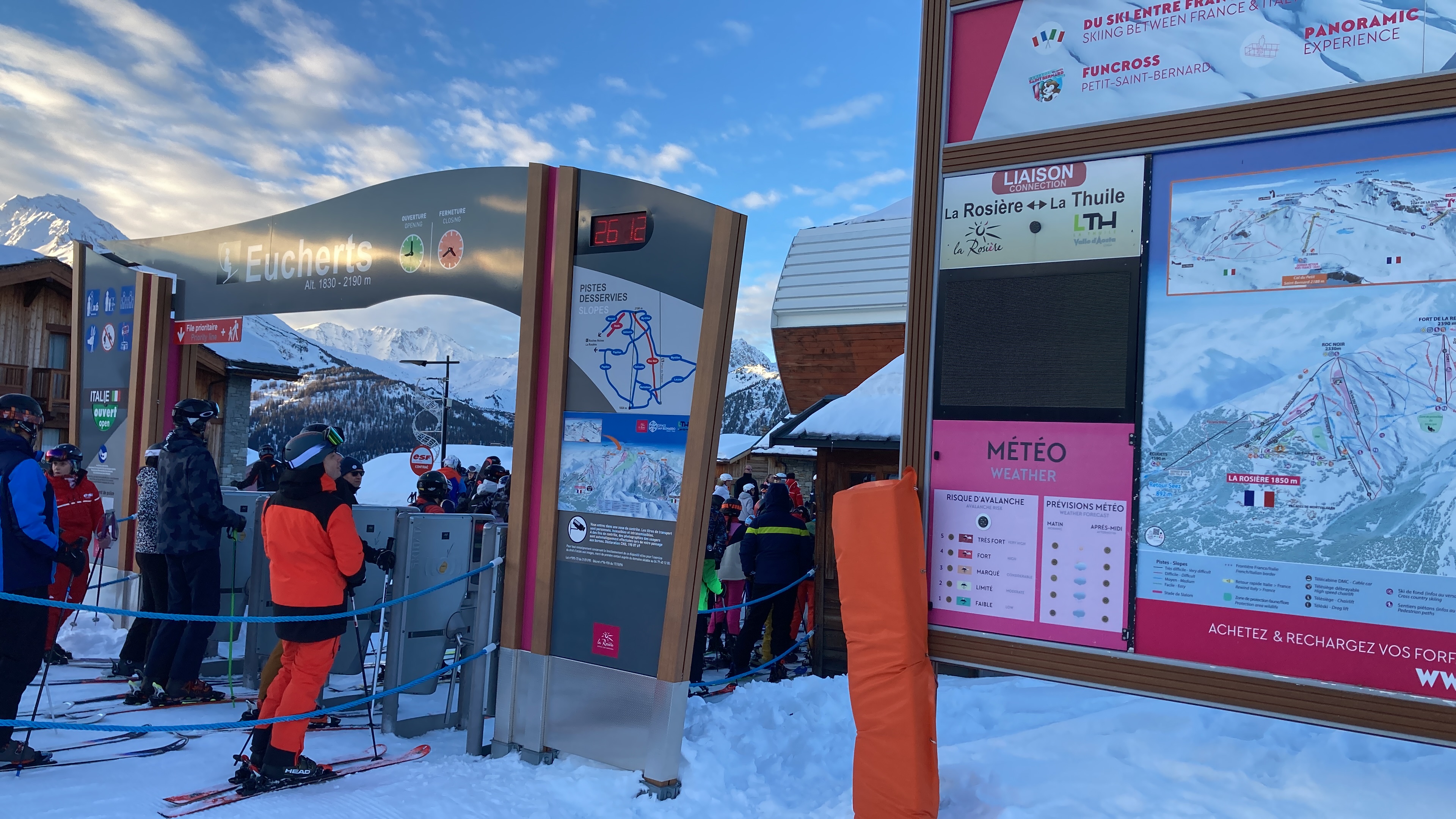 Grand domaine, avec le choix en pistes et quelques commerces et bar/restaurant sur la station La Rosière et/ou Les Eucherts. Possibilité d'aller skier en Italie, donnant encore plus de choix de type de pistes différentes et un autre paysage.