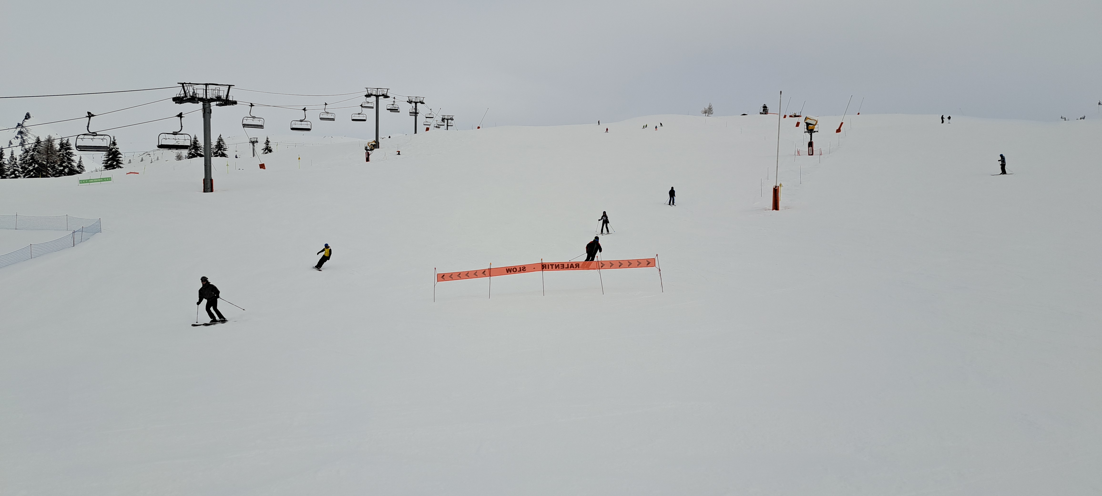 Même avec le faible enneigement des Alpes cette année, les pistes sont presque toutes praticables. Les liaisons sont rapides et il y a très très peu d'attente aux remontées.