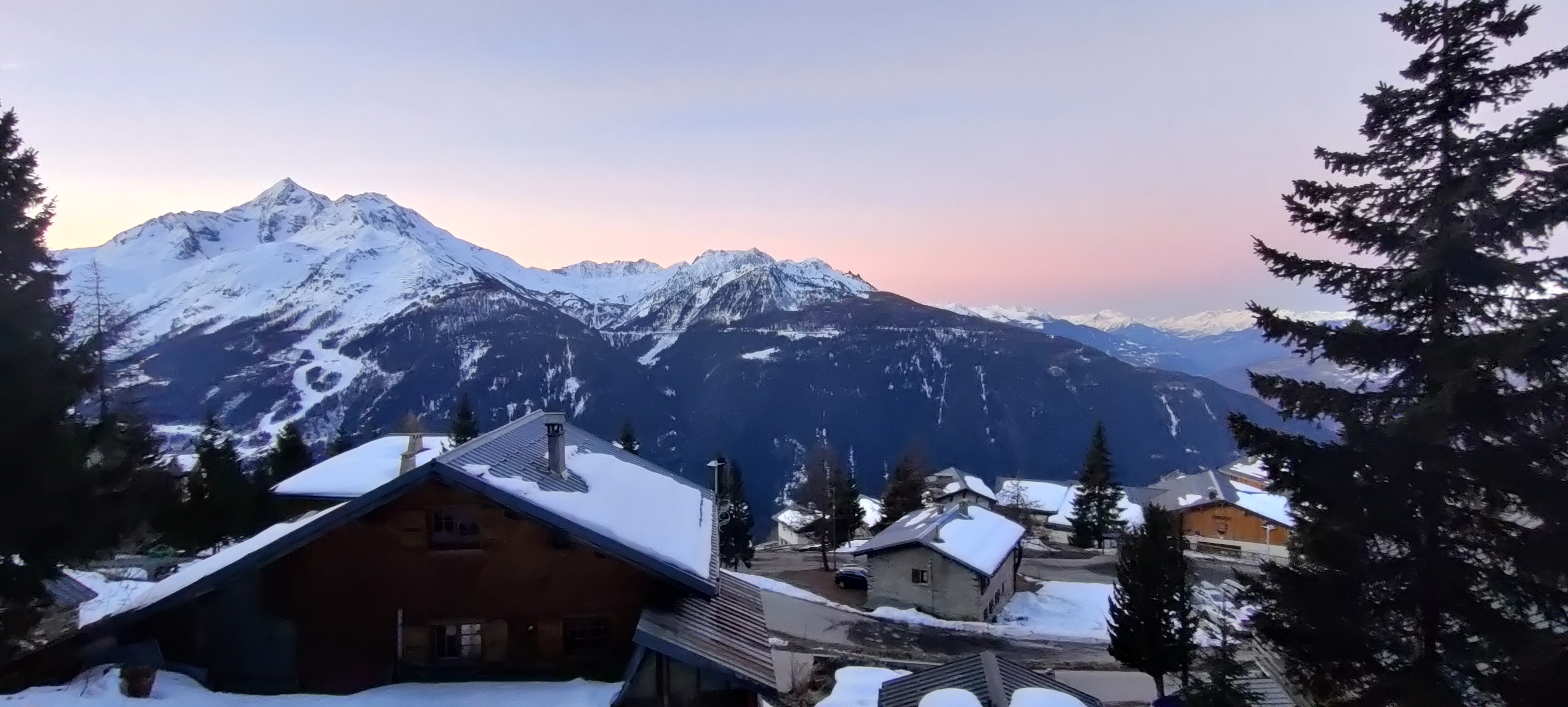 Domaine skiable idéal vaste avec l'Italie..de belles ballades à pied superbes panoramas et ensoleillé du matin au soir coucher de soleil splendide..habitations s'intègrent bien au paysage en bois et pierre .Spa avec sauna vue sur montagne top..un beau village où l'on se sent bien