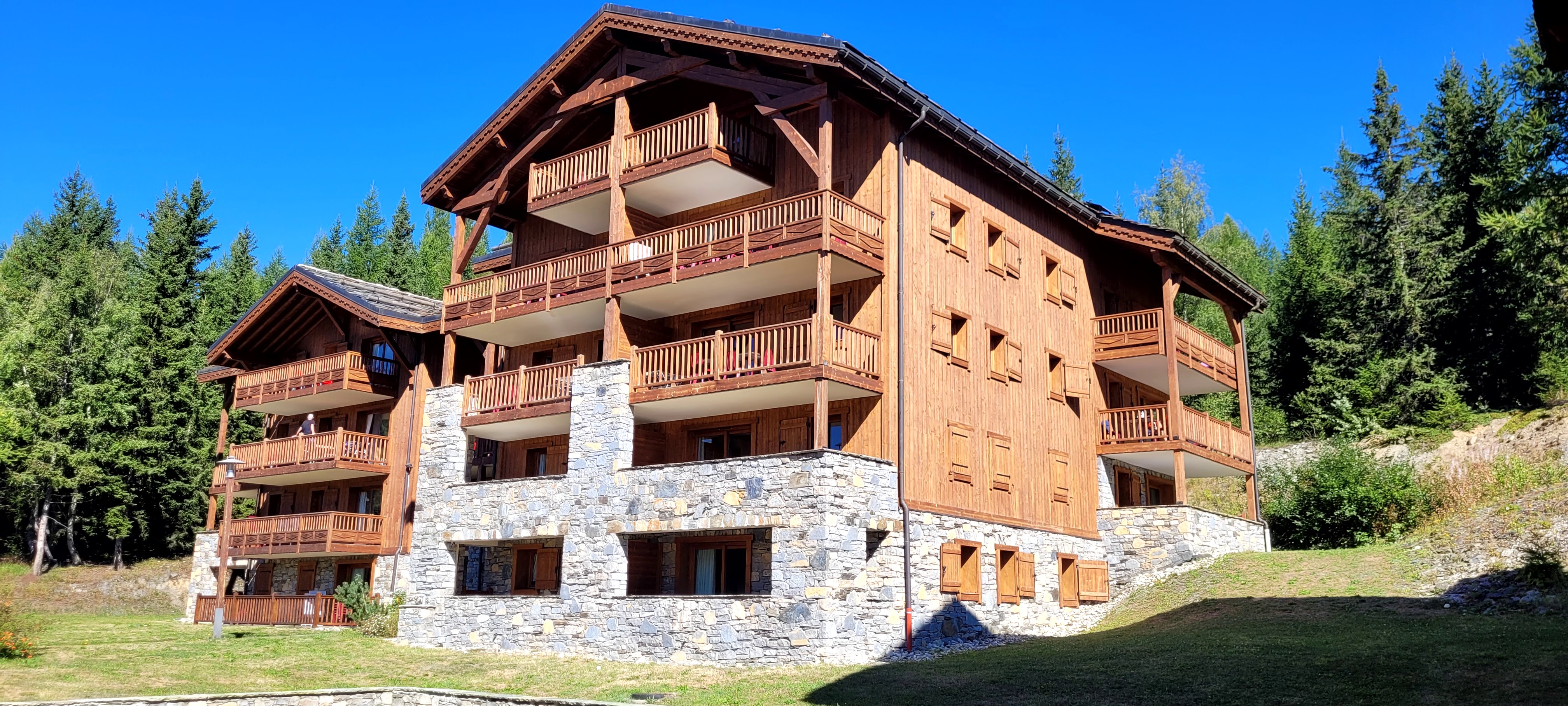 Magnifique station à proximité de l Italie. Les chalets constitués de pierres et de bois sont intègrent au paysage montagnard. Respect de la nature.