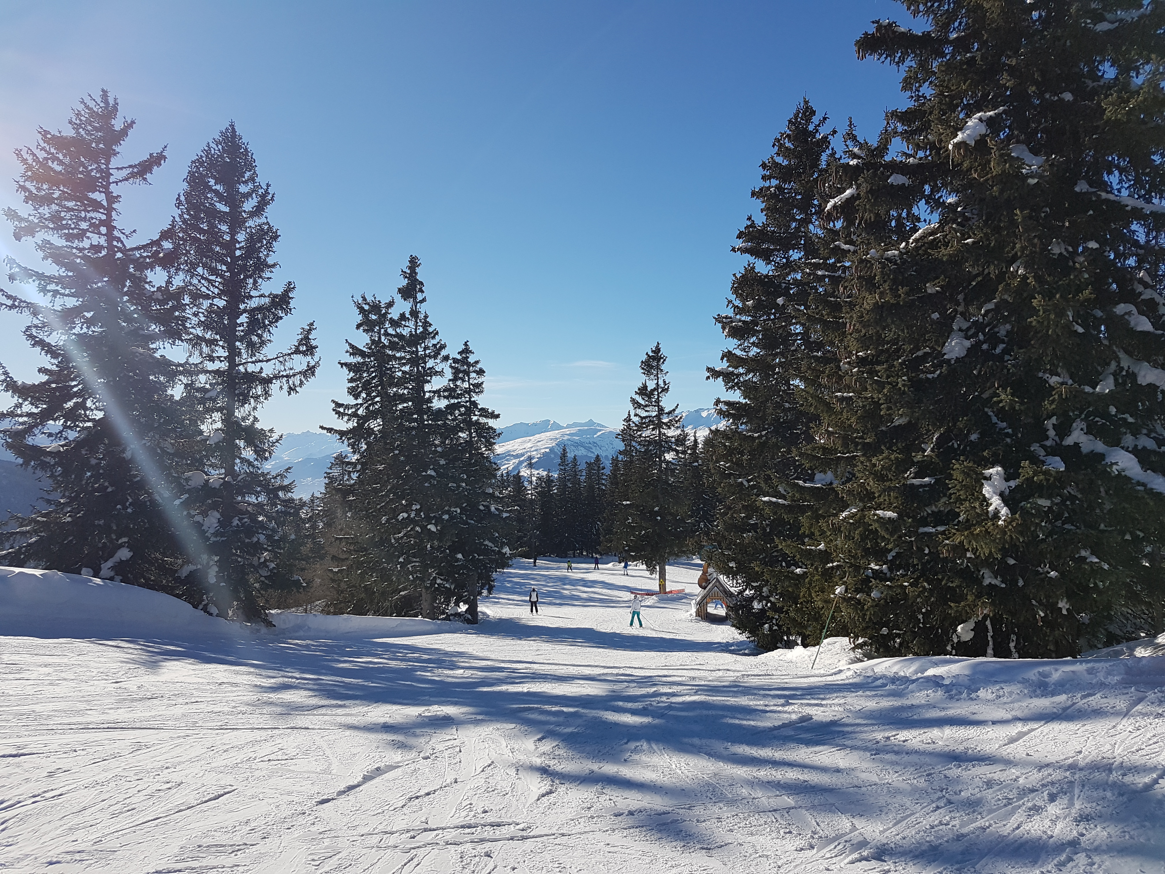 Superbe domaine, avec de belle pistes larges et des pins. Jolie station de chalet Alpins.