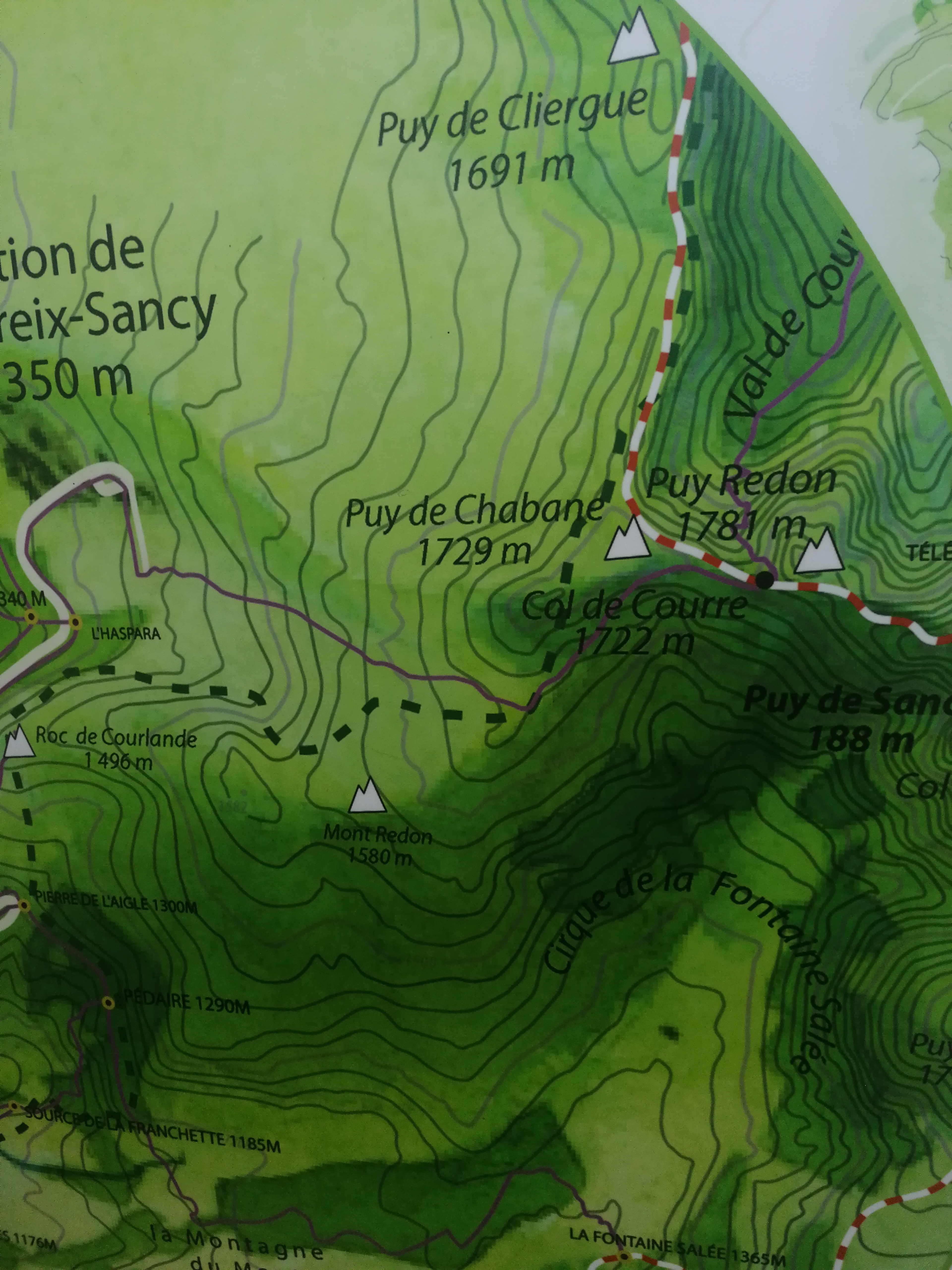 Randonnée au départ de la station Chastreix, c'est pas pour les débutants, départ pour la montée vers le col de Courre à 1700 m, c'est une étape, nous n'avons pas continué car plus d'eau, pour le reste le dénivelé est un peu dur, la descente sur les cailloux, on a suivi le télé siège, chaussures de marche rando obligées, par beau temps la vue est juste magnifique, silence et respect pour la nature sont la priorité, déconseillé aux jeunes enfants. Bien s'équiper avant, eau casquette et crème solaire, lunette de montagne, ça cogne fort au sommet, trousse de secours pour petits bobos. Sinon grimpez et profitez c'est top ! Prévoir 3h montée au col de Courre et descente. Les kms indiqués sur le panneau au départ de la station sont l'aller seulement !! Nous avons fait 10km du coup entre le col de Courre et la station aller retour. Bon courage !