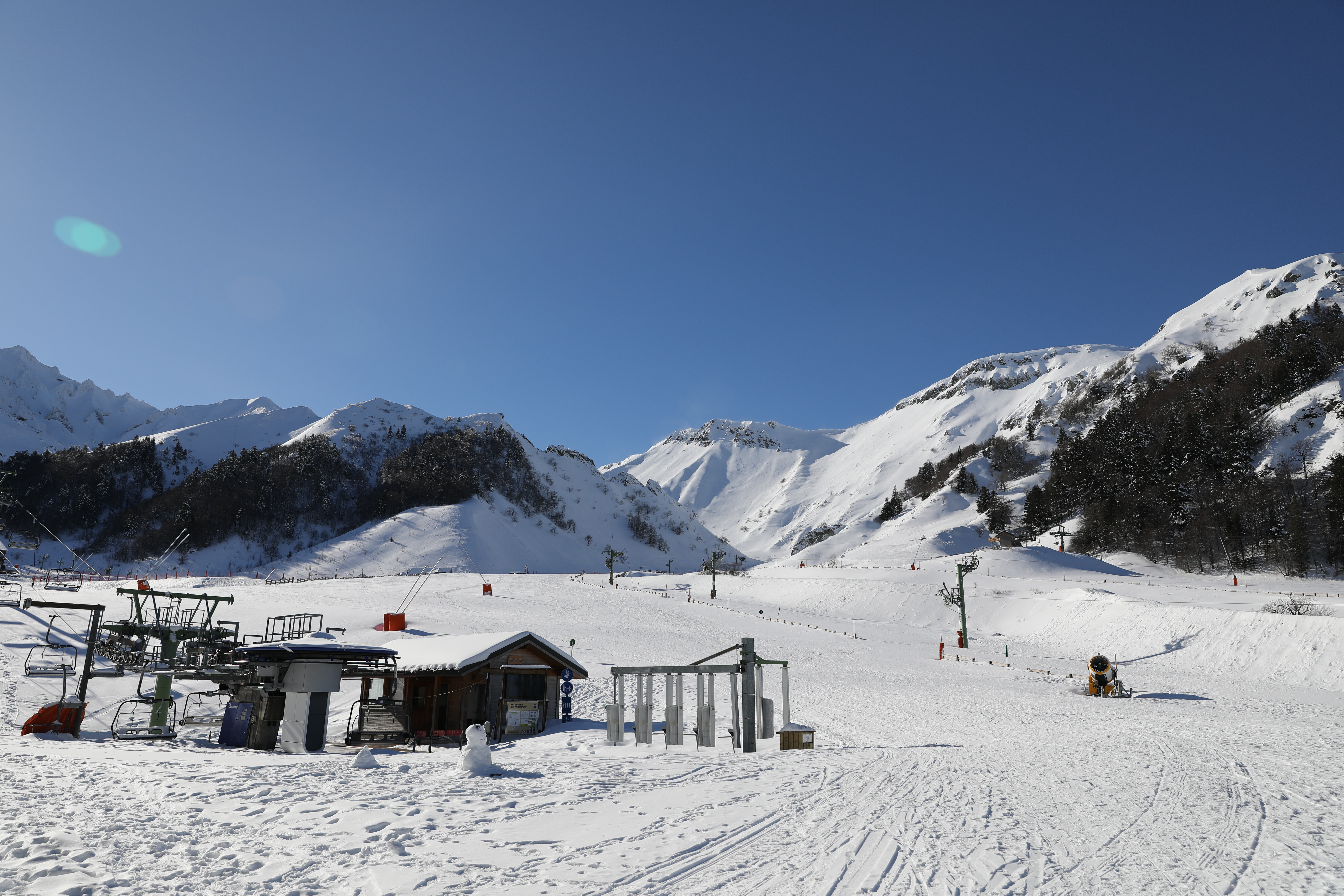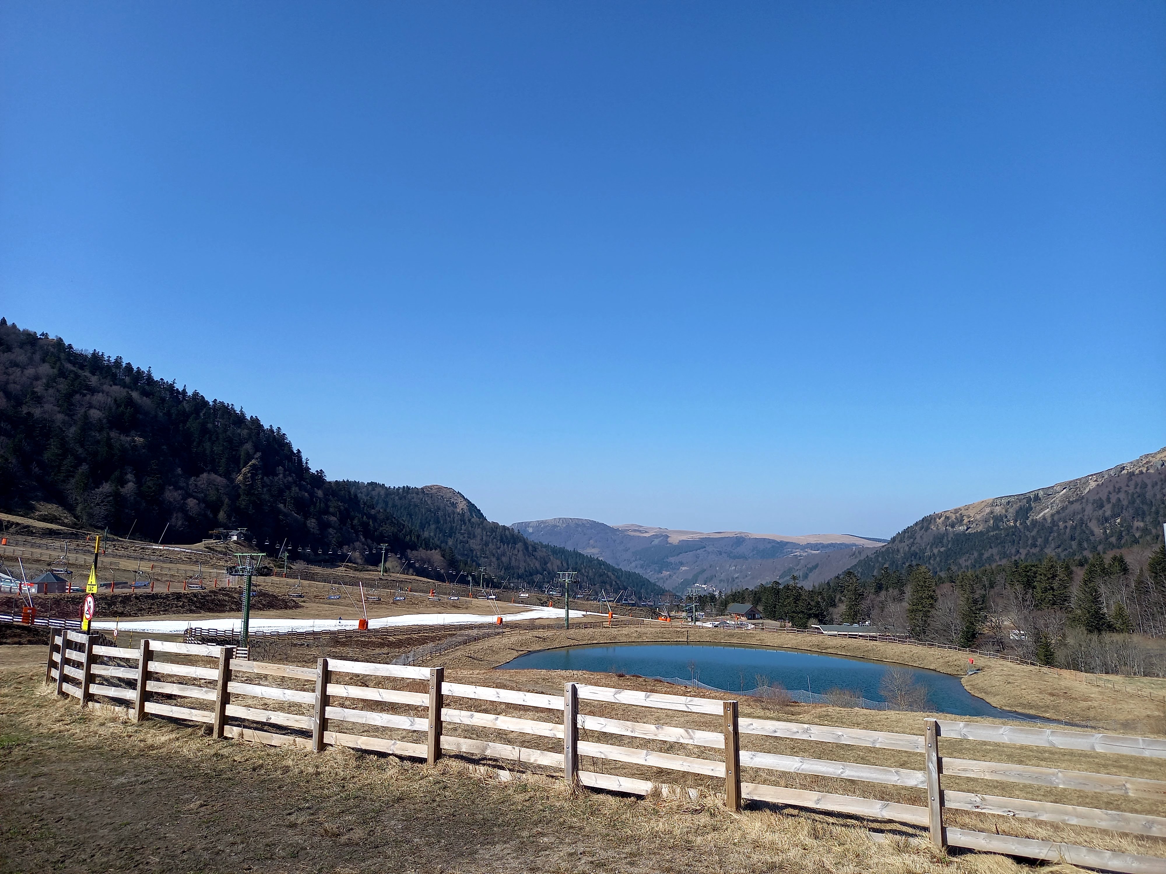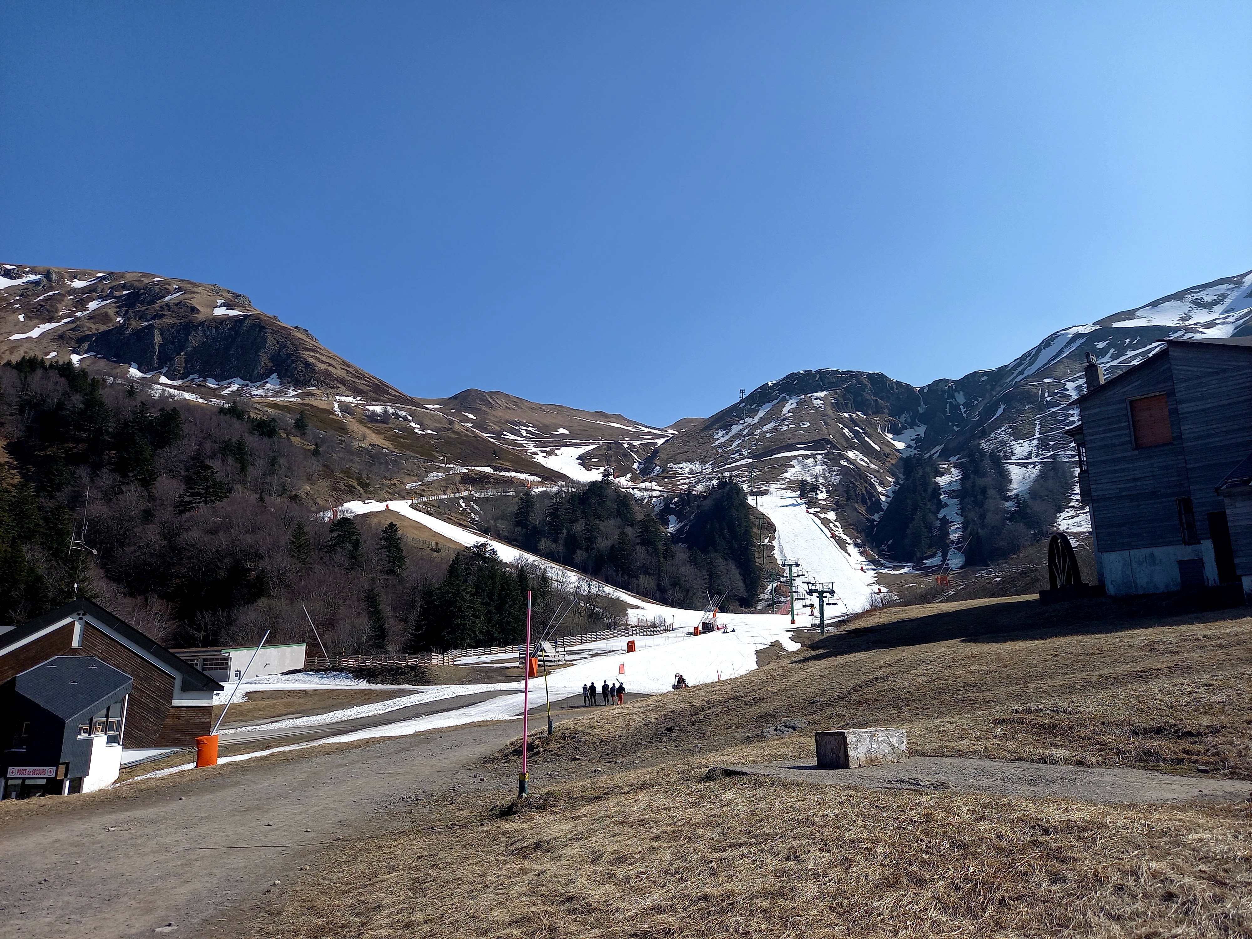 Une des stations les plus importantes du massif central. Malheureusement, plus assez de neige fin février pour pratiquer un sport de glisse, en plus de l'alerte sanitaire covid-19 qui bloque toutes les remontées mécaniques.