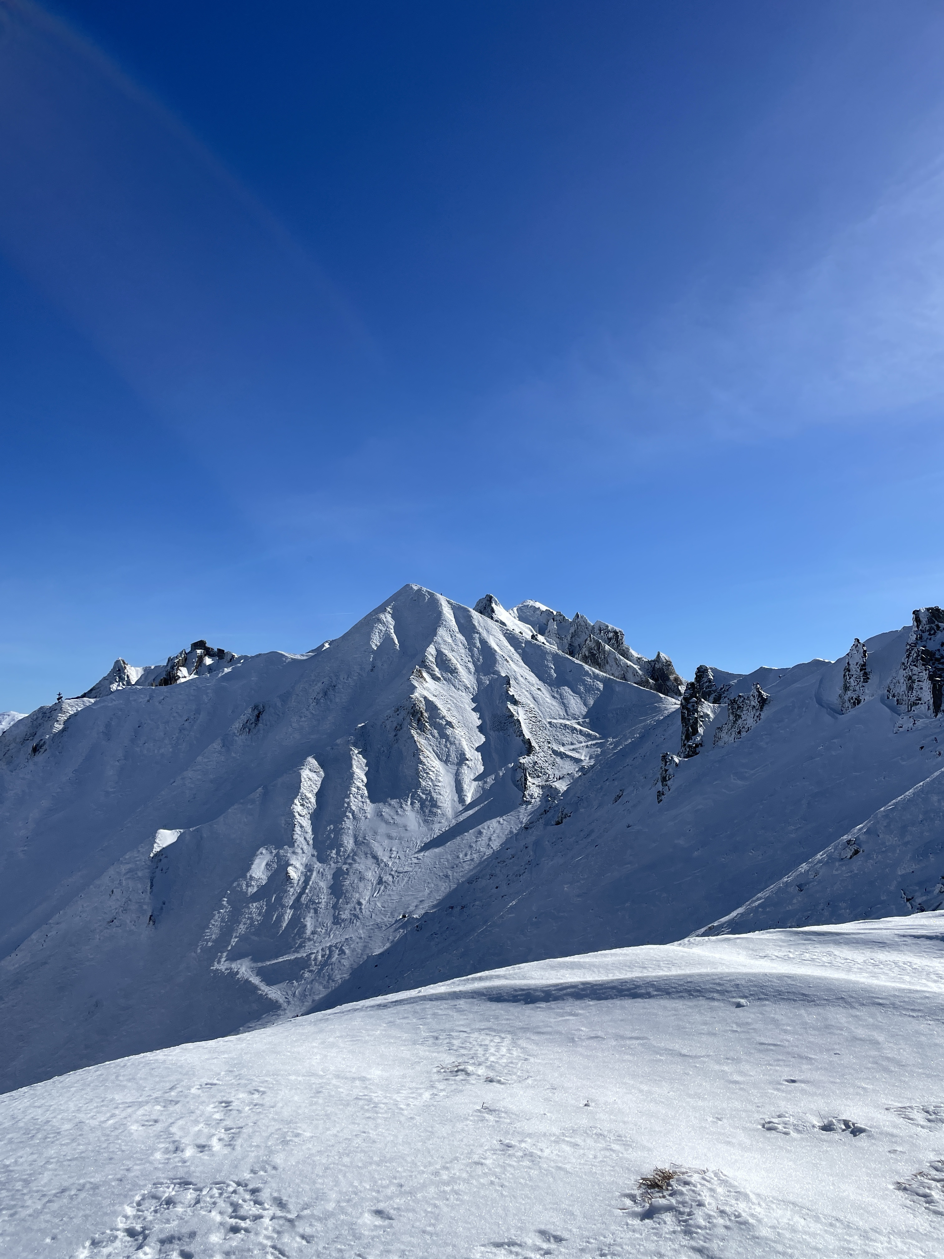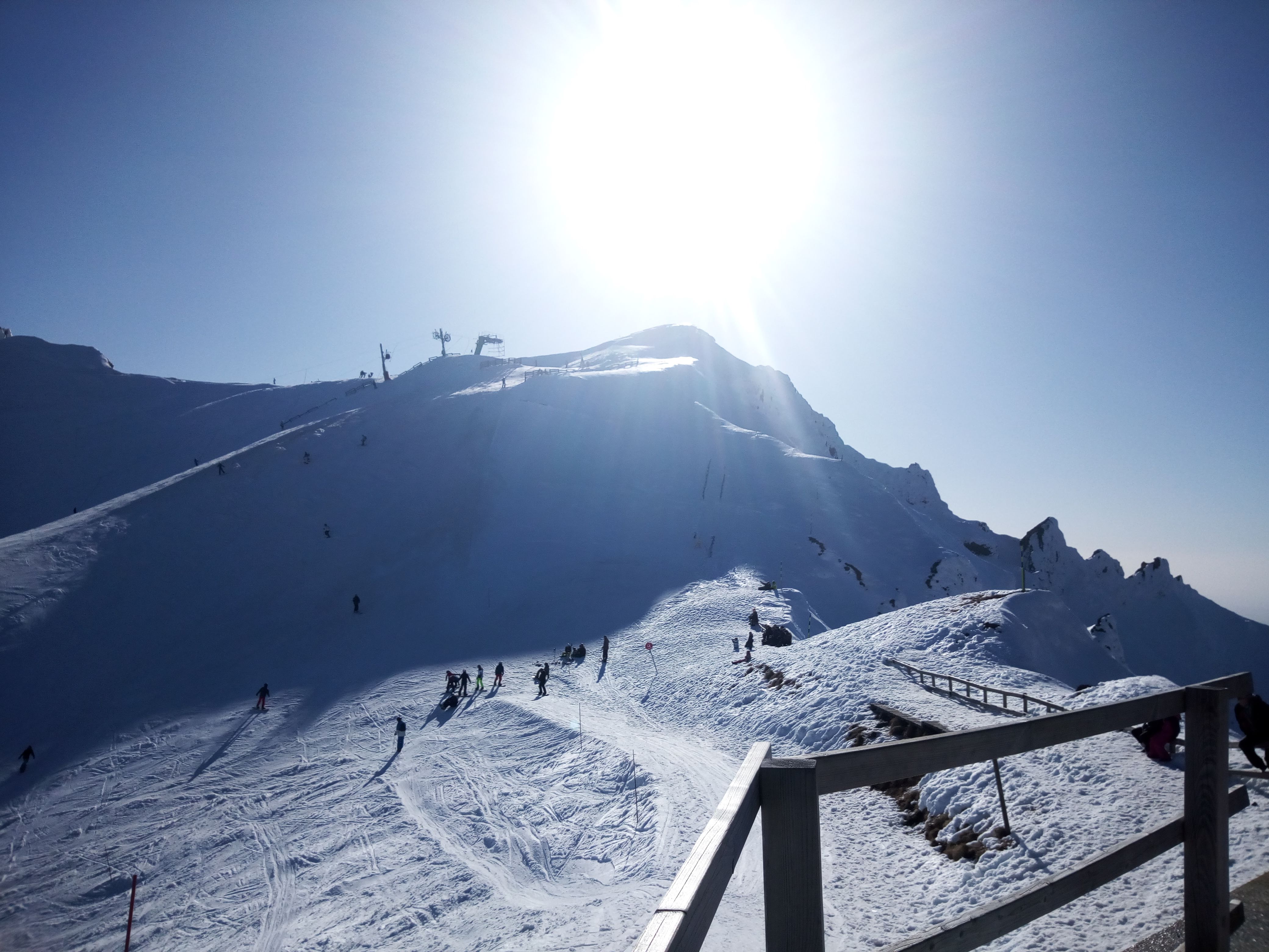 Belle station mais descentes assez gachée par les canons à neiges qui tournent a fond sur les pistes malgré la belle neige tombée les jours précédents. On s'en prend plein la figure a intervalles réguliers, on termine aussi givré que les remontées mécaniques. Dommage car sinon la vue est splendide.