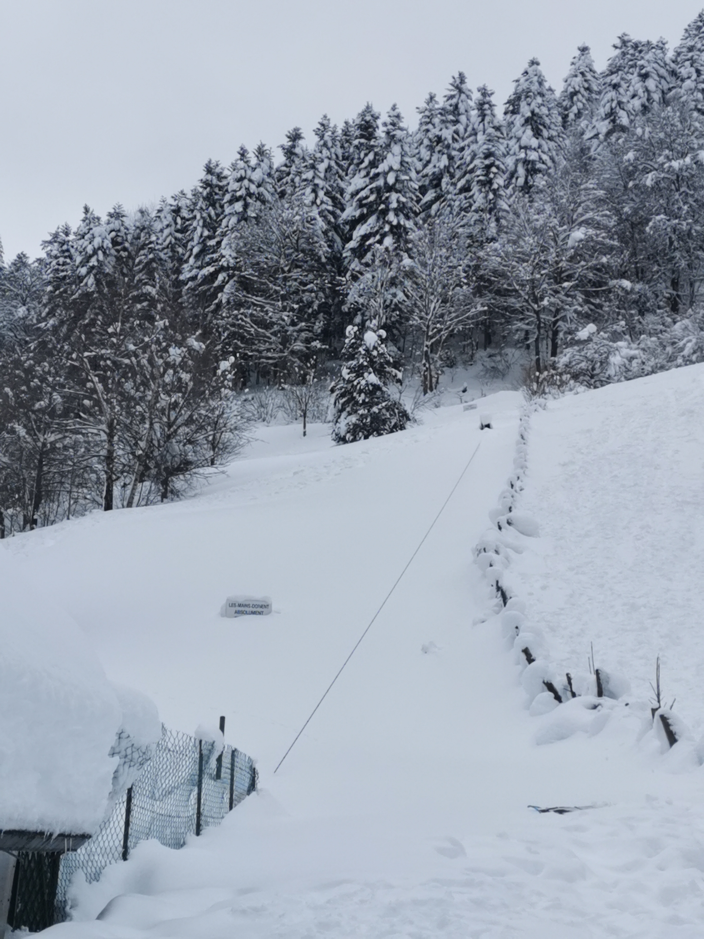 Il faut monter jusqu'au début des pistes. Une année exceptionnelle, énormément de neige et pas de remontées